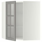 IKEA s39393643 METOD МЕТОД Углов навесн шкаф с полками/сткл дв - белый/Будбин серый 68x80 см