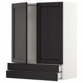 IKEA S39258466 МЕТОД Навесной шкаф/2дверцы/2ящика, белый, Лерхюттан черная морилка, 80x100 см