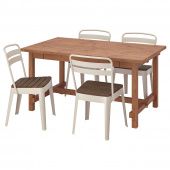 IKEA s39426182 NORDVIKEN НОРДВИКЕН / NORRMANSÖ НОРРМАНСЁ Стол и 4 стула - морилка,антик/бежевый акация 152/223x95 см
