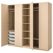 IKEA S19400499 ПАКС / ФОРСАНД Гардероб, комбинация, под беленый дуб, под беленый дуб, 250x60x236 см