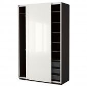 IKEA S69248796 ПАКС Гардероб, черно-коричневый, Хасвик глянцевый/белый, 150x66x236 см