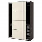 IKEA S29330477 ПАКС / ХОККСУНД Гардероб, комбинация, черно-коричневый, глянцевый светло-бежевый, 150x66x236 см