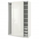 Бесплатно 10 лет гарантии. Подробнее об условиях гарантии — в гарантийной брошюре.Эту комбинацию ПАКС/КОМПЛИМЕНТ можно адаптировать в соответствии с вашими потребностями, воспользовавшись программой для проектирования гардеробов ПАКС.Регулируемые ножки позволяют скорректировать неровности пола.Раздвижные дверцы не требуют места при открывании.Обеспечивает плавное и бесшумное закрывание дверец.С помощью программы планирования гардероба ПАКС вы можете легко дополнить свою комбинацию интегрированной подсветкой. После выбора источника освещения программа предложит необходимые аксессуары.Сетчатый материал обеспечивает циркуляцию воздуха. Корзина подходит для хранения сложенной одежды и различных аксессуаров.Знаете ли вы, что внутренние элементы можно в любой момент обновить или дополнить? С небольшими изменениями решение для хранения всегда будет соответствует вашей одежде, обуви и аксессуарам.Для раздвижных дверей не нужны ручки, что придает дизайну гардероба лаконичный облик, позволяя сочетать его с мебелью в разных стилях.Эту мебель необходимо крепить к стене с помощью прилагаемого стенного крепежа.Для различного типа стен требуются разные виды креплений. Выберите подходящие для ваших стен шурупы, дюбели, саморезы и т. п. (не прилагаются).Для сборки этой мебели требуются два человека.Требуемая минимальная высота потолка для сборки в горизонтальном положении – 244 см, в вертикальном – 242 см.Аксессуары для организации хранения в гардеробе продаются отдельно.На платяную штангу можно повесить примерно 30 рубашек на плечиках.Материалы и уход