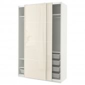 IKEA s39480292 PAX ПАКС / HOKKSUND ХОККСУНД Гардероб - белый/глянцевый светло-бежевый 150x66x236 см