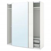 Бесплатно 10 лет гарантии. Подробнее об условиях гарантии — в гарантийной брошюре.Эту комбинацию ПАКС/КОМПЛИМЕНТ можно адаптировать в соответствии с вашими потребностями, воспользовавшись программой для проектирования гардеробов ПАКС.Регулируемые ножки позволяют скорректировать неровности пола.Раздвижные дверцы не требуют места при открывании.Устройство обеспечивает плавное и бесшумное открывание и закрывание дверей.С помощью программы планирования гардероба ПАКС вы можете легко дополнить свою комбинацию интегрированной подсветкой. После выбора источника освещения программа предложит необходимые аксессуары.Знаете ли вы, что внутренние элементы можно в любой момент обновить или дополнить? С небольшими изменениями решение для хранения всегда будет соответствует вашей одежде, обуви и аксессуарам.Сетчатый материал обеспечивает циркуляцию воздуха. Корзина подходит для хранения сложенной одежды и различных аксессуаров.Это решение позволит разместить как минимум 120 вешалок для одежды.Переверните панели, чтобы изменить внешний вид гардероба. Каждая сторона имеет свою отделку. Используйте один вариант отделки или сочетайте оба в одном решении.Для раздвижных дверей не нужны ручки, что придает дизайну гардероба лаконичный облик, позволяя сочетать его с мебелью в разных стилях.Эту мебель необходимо крепить к стене с помощью прилагаемого стенного крепежа.Для различного типа стен требуются разные виды креплений. Выберите подходящие для ваших стен шурупы, дюбели, саморезы и т. п. (не прилагаются).Для сборки этой мебели требуются два человека.Требуемая минимальная высота потолка для сборки в горизонтальном положении – 244 см, в вертикальном – 242 см.Аксессуары для организации хранения в гардеробе продаются отдельно.На платяную штангу можно повесить примерно 30 рубашек на плечиках.Дизайнер:Ehlén Johansson/IKEA of SwedenМатериалы и уход