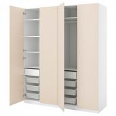 Бесплатно 10 лет гарантии. Подробнее об условиях гарантии — в гарантийной брошюре.Эту комбинацию ПАКС/КОМПЛИМЕНТ можно адаптировать в соответствии с вашими потребностями, воспользовавшись программой для проектирования гардеробов ПАКС.Регулируемые ножки позволяют скорректировать неровности пола.С помощью программы планирования гардероба ПАКС вы можете легко дополнить свою комбинацию интегрированной подсветкой. После выбора источника освещения программа предложит необходимые аксессуары.Благодаря продуманным внутренним элементам в этом гардеробе есть место для длинной и короткой одежды на плечиках, а свободное пространство под короткой одеждой задействовано для хранения.Сетчатый материал обеспечивает циркуляцию воздуха. Корзина подходит для хранения сложенной одежды и различных аксессуаров.Эту мебель необходимо крепить к стене с помощью прилагаемого стенного крепежа.Для различного типа стен требуются разные виды креплений. Выберите подходящие для ваших стен шурупы, дюбели, саморезы и т. п. (не прилагаются).Для сборки этой мебели требуются два человека.Каркас может быть собран в вертикальном положении, если высота потолка составляет минимум 237 см. Следуйте инструкциям по сборке в упаковке.Аксессуары для организации хранения в гардеробе продаются отдельно.Материалы и уход