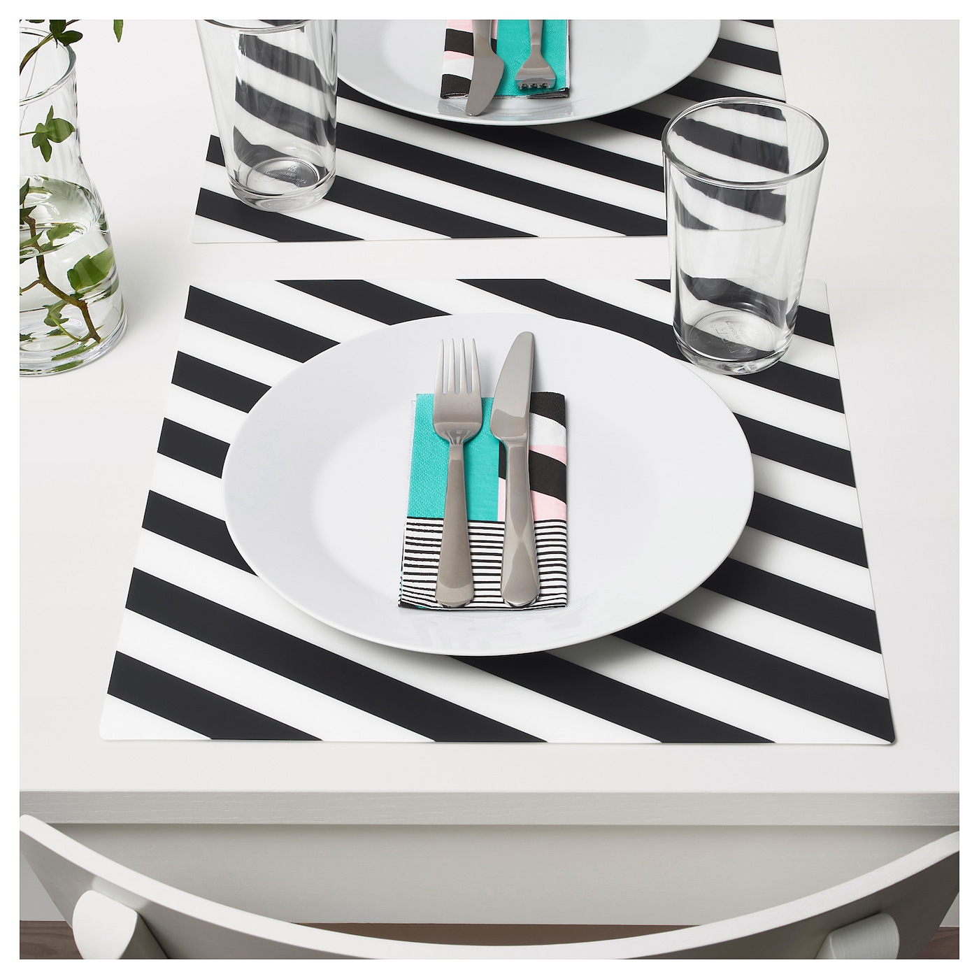 IKEA ПИПИГ Салфетка под приборы, в полоску, черный/белый, 37x37 см