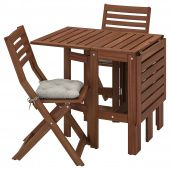 IKEA s19328432 ÄPPLARÖ ЭПЛАРО Стол+2 складных стула,д/сада - коричневая морилка/Куддарна серый