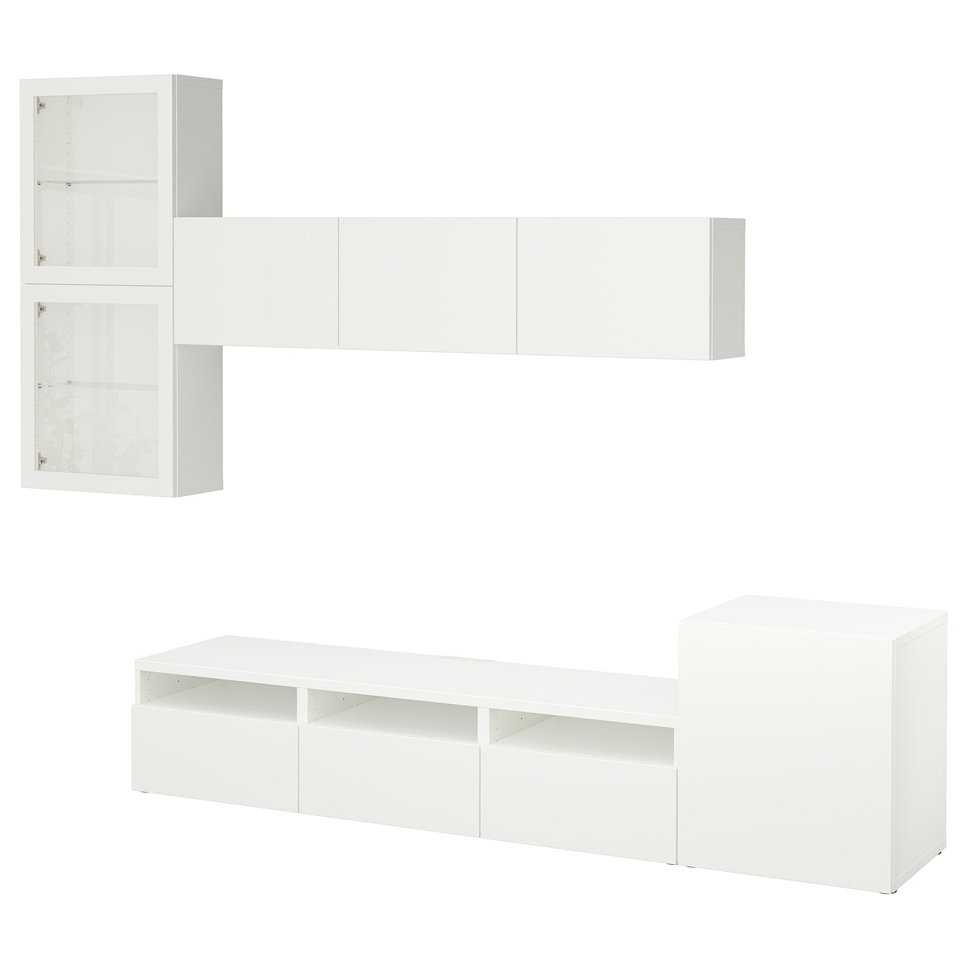 IKEA s39406829 BESTÅ БЕСТО Шкаф для ТВ, комбин/стеклян дверцы - белый/Лаппвикен белый прозрачное стекло 300x42x211 см
