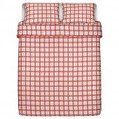 IKEA 80531397 SILESHÅR СИЛЕСХОР Пододеяльник и 2 наволочки - белый красный/клетка 200x200/50x70 см