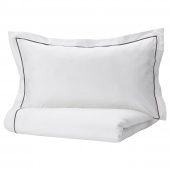 Смесовая ткань из хлопка и вискозы способствует испарению влаги и поддержанию в постели ровной комфортной температуры, необходимой для полноценного сна.Вискоза хорошо пропускает воздух и эффективно впитывает влагу. Кроме того, этот материал придает ткани легкий блеск и приятную мягкость.Такие детали, как вышивка по краю и прозрачные пуговицы на пододеяльнике придают постельному белью особое очарование.Прочный пододеяльник легко содержать в чистоте: его можно стирать при температуре 60 °C.Пододеяльник застегивается на прозрачные пуговицы по нижнему краю.Наволочка с клапаном.Количество нитей на кв. дюйм: 152.Чем выше количество нитей на квадратный дюйм, тем прочнее и плотнее ткань.Дизайнер:IKEA of SwedenМатериалы и уход