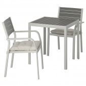 IKEA s39287176 SJÄLLAND ШЭЛЛАНД Садовый стол и 2 легких кресла - темно-серый/Куддарна серый 71x71x73 см