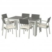 IKEA s69291577 SJÄLLAND ШЭЛЛАНД Стол+6 кресел,д/сада - темно-серый/Куддарна бежевый 156x90 см