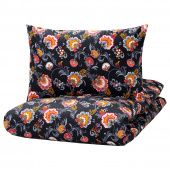 IKEA 50519839 SKÄCKMAL СКЭККМАЛ Пододеяльник и 1 наволочка - цветок/черный 150x200/50x70 см