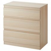 IKEA 20327766 СКОНЕВИК Комод с 3 ящиками, под беленый дуб, 70x72 см