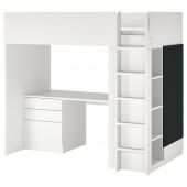 IKEA s69392152 SMÅSTAD СМОСТАД Кровать-чердак - белый поверхность доски для записей/с письменным столом с 4 ящиками 90x200 см
