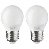 Срок службы этих энергоэффективных светодиодных лампочек — около 25000 часов. А значит, вы сможете экономить не только на оплате электричества, но и на новых лампочках.Светодиодная лампа излучает такой же теплый свет, как обычная лампа мощностью 25 Вт, и работает без мерцания и шума. То, что нужно для создания в комнате располагающей, уютной атмосферы.Индекс цветопередачи (CRI) показывает естественность цветов при свете той или иной лампочки. Значение выше 80 означает хорошую цветопередачу, близкую к уровню при дневном освещении. Индекс этой лампы — 90.Светодиодные лампочки есть с разной температурой света, благодаря которой свет ощущается более теплым или холодным. Эта лампочка дает теплый белый свет (2700 К).Корпус изготовлен из прочного пластика, который выдерживает температуру от –20 °C до +40 °C.Загорается на полную мощность сразу после включения.Яркость лампочки не регулируется.Выберите подходящую для светильника лампочку. В нашем ассортименте есть светильники с большим и маленьким патроном и лампочки с подходящими цоколями.Дизайнер:IKEA of SwedenМатериалы и уход