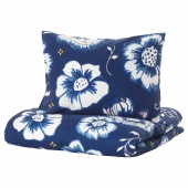 IKEA 30426978 СОНГЛЭРКА Пододеяльник и 1 наволочка, цветок, темно-синий белый, 150x200/50x70 см