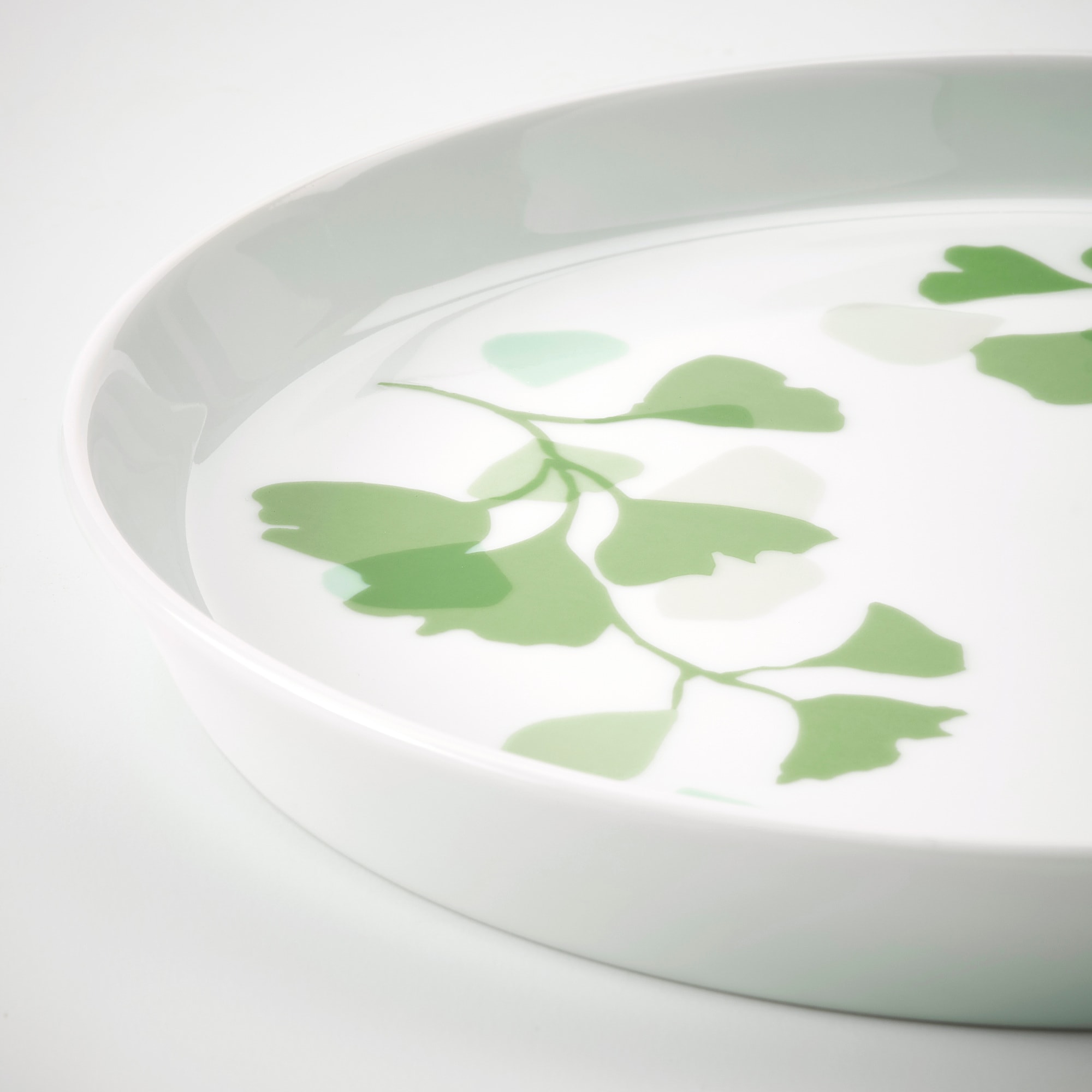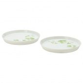 IKEA 10450993 СТИЛЕНЛИГ Тарелка десертная, орнамент «листья» белый, зеленый, 17 см