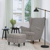 IKEA s49487882 STRANDMON СТРАНДМОН Кресло с табуретом для ног - Виббербу черный/бежевый