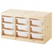 Серия удобной и устойчивой мебели для хранения игрушек, отдыха и игр.В каркасе подготовлены несколько пазов, в которые вы можете установить контейнеры и полки и в любой момент при необходимости изменить их положение.Расположите модули для хранения на удобной для ребенка высоте, и он сможет самостоятельно достать нужную вещь и навести порядок.Можно дополнить крышкой ТРУФАСТ.Дизайнер:Studio CopenhagenМатериалы и уход
