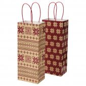 IKEA 10499800 VINTER 2021 ВИНТЕР 2021 Подарочная упаковка для бутылки - орнамент «звезды» красный/бежевый 13x32 см