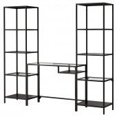 IKEA S79294491 ВИТШЁ Стеллаж+стол д/ноутбука, черно-коричневый, стекло, 202x36x175 см